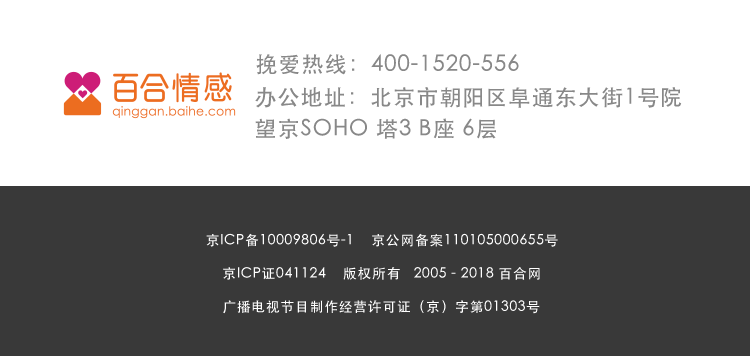 百合网(www.baihe.com)以"用科技让人们的生活更幸福"为己任,秉承专业、真诚、可信赖的服务宗旨,专注于婚姻挽救,情感挽回业务。